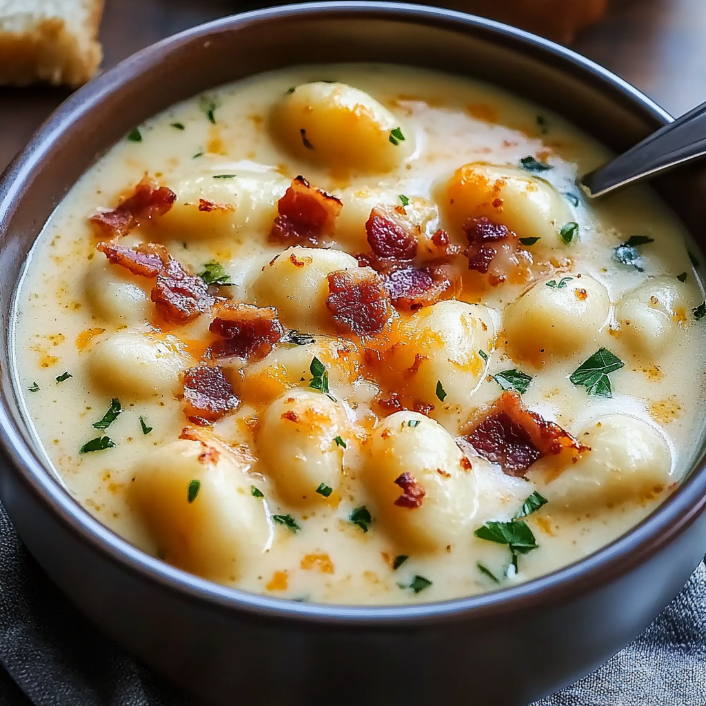 Bacon Cheddar Gnocchi Soup is a perfect blend of creamy, cheesy, and savory flavors that brings comfort to every spoonful. Easy enough for a weeknight meal yet impressive for guests, this soup is versatile and customizable. Grab your favorite pot, some fresh ingredients, and create a bowl of warmth that everyone will love. Don’t forget to share your delicious results and enjoy the cozy satisfaction of homemade comfort food!
