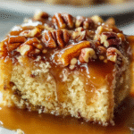 This Butter Pecan Praline Poke Cake is the ultimate Southern-inspired dessert. It’s sweet, buttery, nutty, and unbelievably moist — the kind of cake people remember long after the last bite.