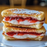 If you’re craving a dessert that’s crispy, creamy, and loaded with fresh strawberry flavor, these Fried Strawberry Cheesecake Sandwiches are about to steal your heart. Imagine two slices of buttery bread stuffed with sweetened cream cheese and juicy strawberries, fried until perfectly golden, and dusted with powdered sugar. Every bite delivers a perfect balance of crunch, creaminess, and fruity sweetness.