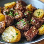 Looking for a quick, hearty, and flavor-packed dinner that tastes like a restaurant dish but is easy enough for weeknights? These Garlic Butter Beef Bites & Potatoes are your answer. Juicy, tender steak bites are pan-seared to perfection, tossed in a rich garlic butter sauce, and paired with crispy golden potatoes.