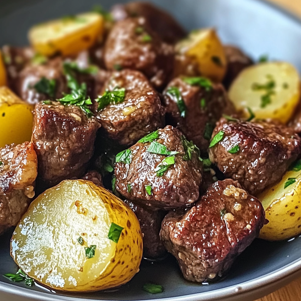This Garlic Butter Beef Bites & Potatoes recipe delivers everything you want in a satisfying dinner: juicy steak, crispy potatoes, and a luscious garlic butter sauce—all in just 30 minutes.