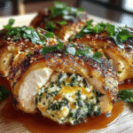 If you’re looking for a recipe that feels elegant enough for date night but easy enough for a weeknight dinner, these Herbed Ricotta Stuffed Chicken Rolls are just what you need. Imagine juicy chicken breasts, tender on the outside, filled with a creamy, cheesy ricotta mixture infused with garlic, parsley, and fresh herbs. Rolled up neatly and baked until golden, this dish looks like something you’d order at a restaurant—but it comes together right in your own kitchen.