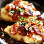 If you’re craving a dinner that’s easy, flavorful, and guaranteed to impress, this Maple Garlic Bacon Chicken is the recipe you need tonight. Juicy, tender chicken breasts are wrapped in crispy bacon, brushed with a sweet and savory maple-garlic glaze, and baked until golden perfection.