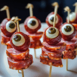 Halloween isn’t just about costumes and candy — it’s also the perfect time to serve up creepy, crowd-pleasing snacks that make everyone stop and stare. Enter skewered salami eyeballs, the ultimate spooky Halloween appetizer that’s equal parts weird, fun, and delicious. Made with just a few simple ingredients — like salami, fresh mozzarella balls, and pimento-stuffed olives — these little “eyeballs” are skewered on toothpicks to create a snack that’s as eerie as it is tasty.